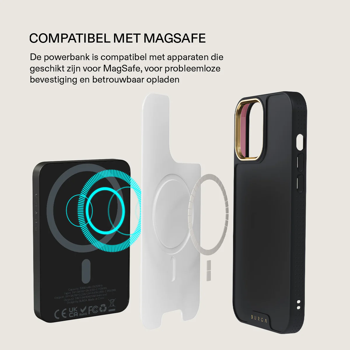 Klein maar machtig. Stijlvol maar praktisch. Maak kennis met de nieuwe en verbeterde BURGA Magnetische powerbank - je redder in zakformaat met een capaciteit van 5,000, 10,000 of 15,000mAh. Waar je ook bent: je blijft je telefoon opgeladen en alle ogen zijn op jou gericht.