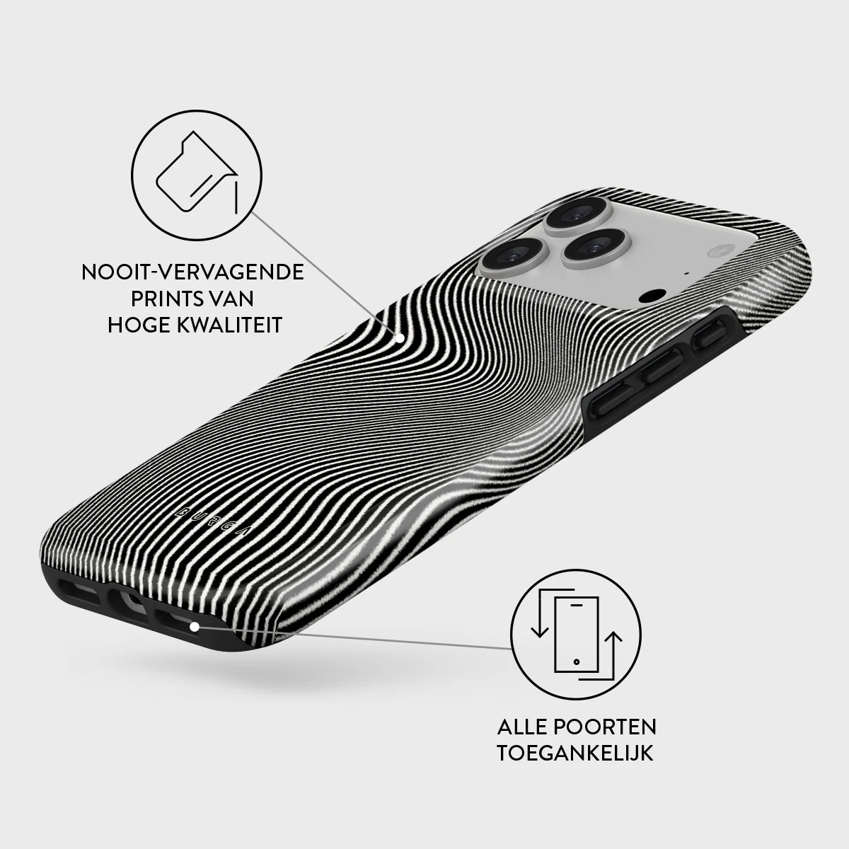 - Verhoogde randen rond de camera voor extra bescherming.