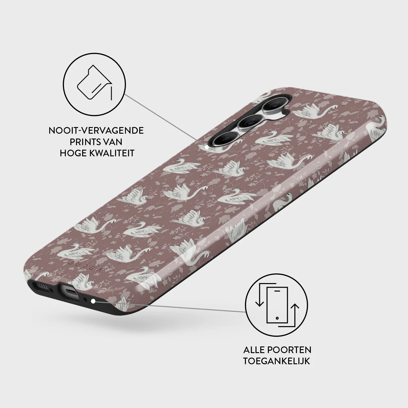 - Verhoogde randen rond de camera voor extra bescherming.