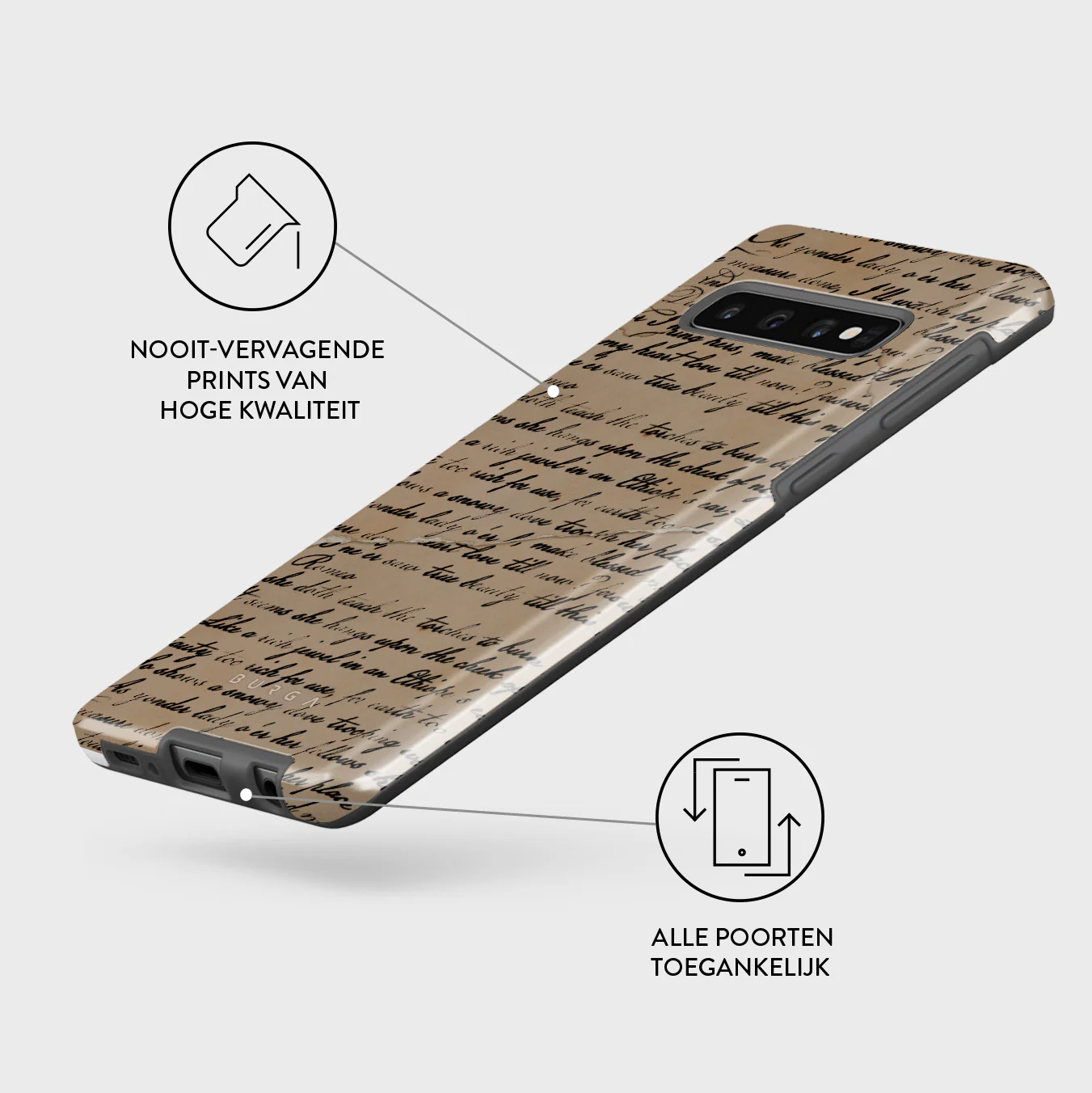 - Verhoogde randen rond de camera voor extra bescherming.