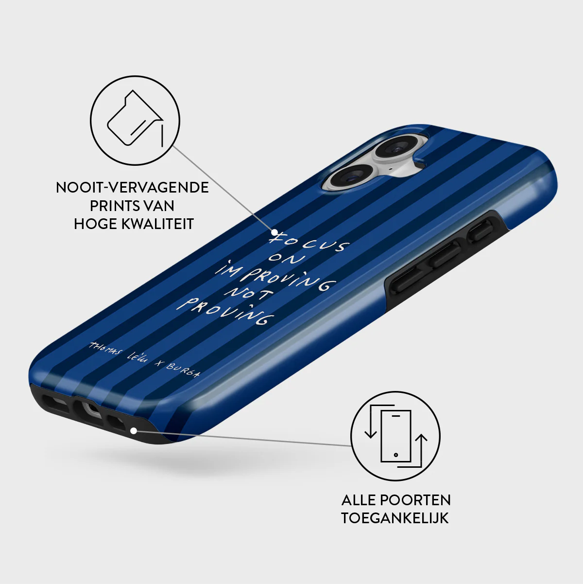 Kenmerken van dit design: handgeschreven tekst, citaat, blauwe strepen