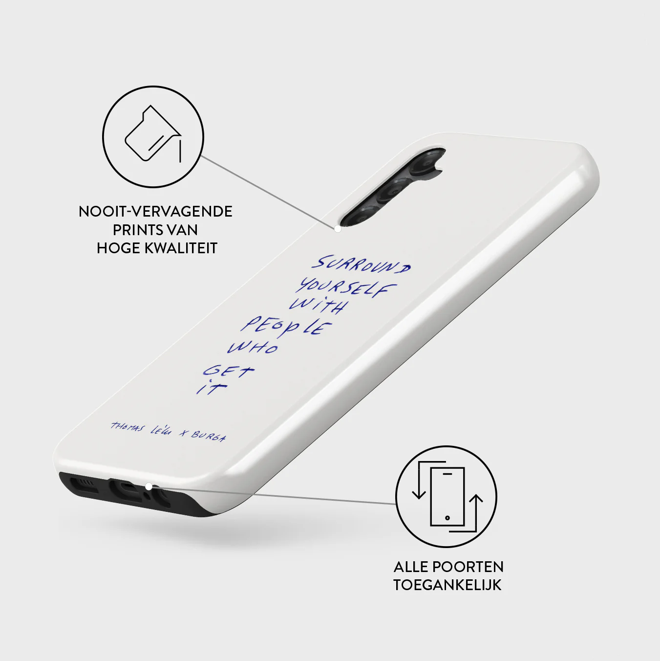 - Verhoogde randen rond de camera voor extra bescherming.