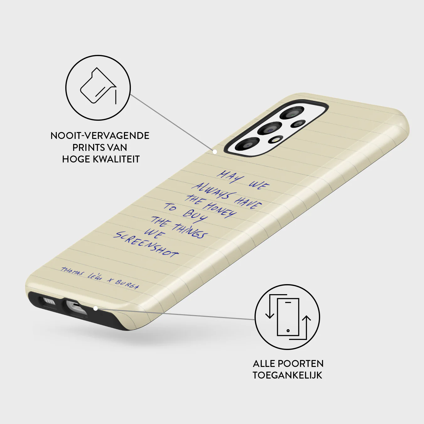 - Verhoogde randen rond de camera voor extra bescherming.