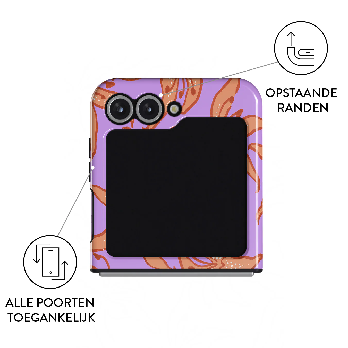 - Verhoogde randen rond de camera voor extra bescherming.