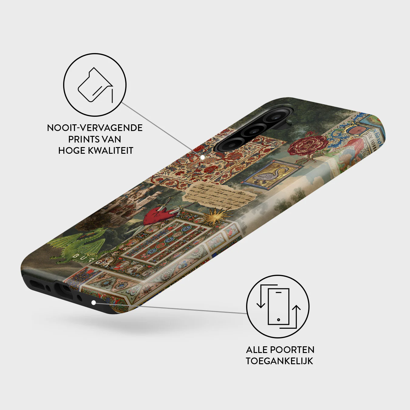 - Verhoogde randen rond de camera voor extra bescherming.