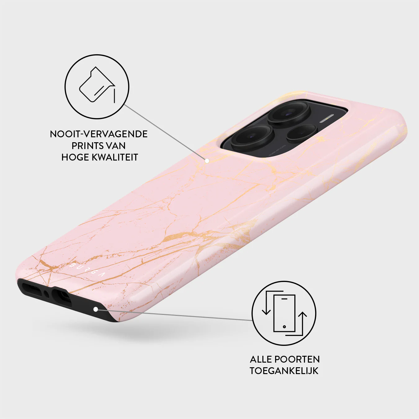 - Verhoogde randen rond de camera voor extra bescherming.