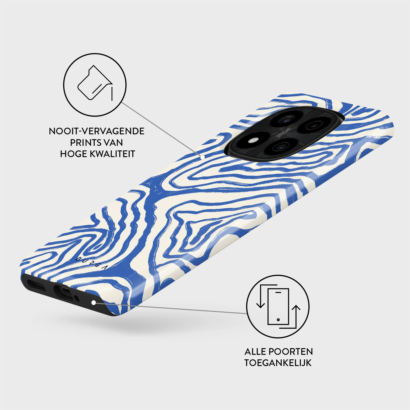 - Verhoogde randen rond de camera voor extra bescherming.