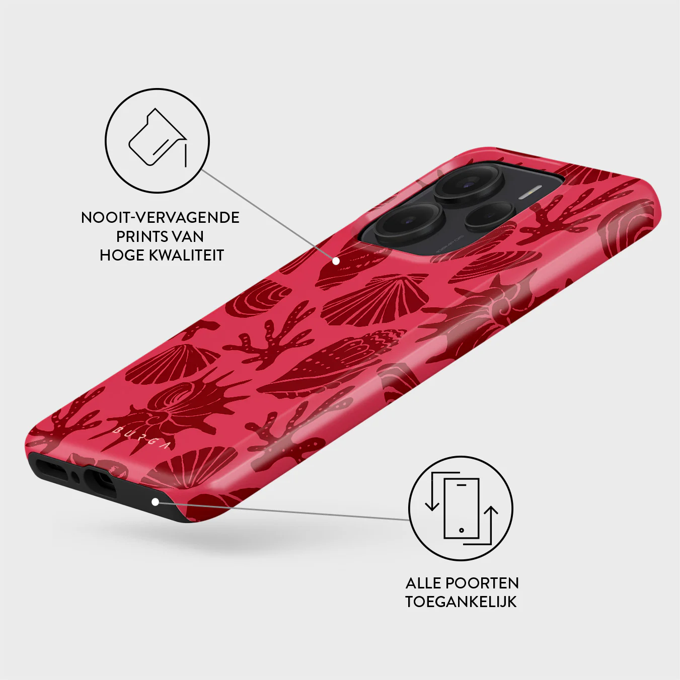 - Verhoogde randen rond de camera voor extra bescherming.