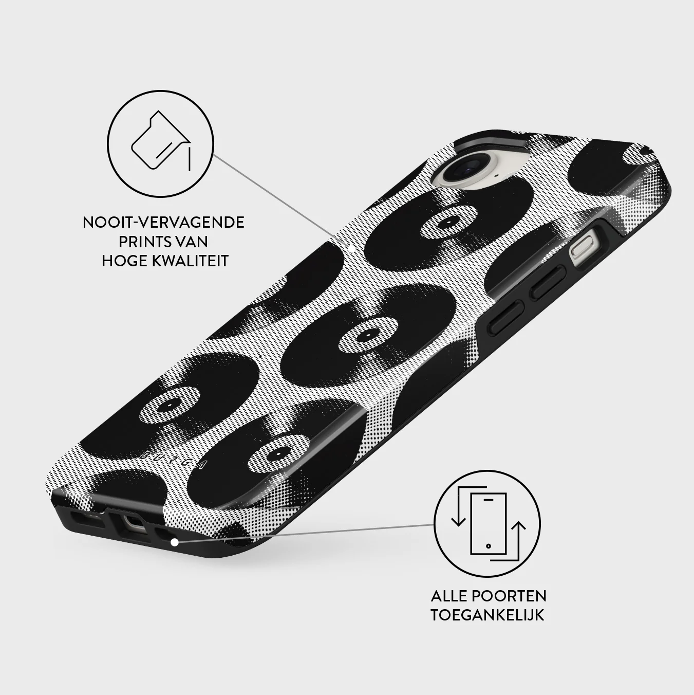 Kenmerken van dit design: vinylplaten, zwart-wit, muziek