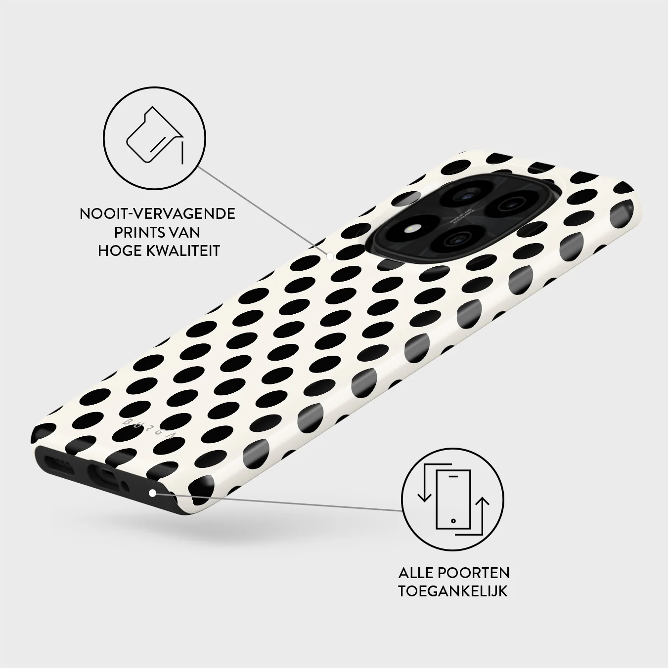 Kenmerken van dit design: zwarte stippen op een stralend witte achtergrond.