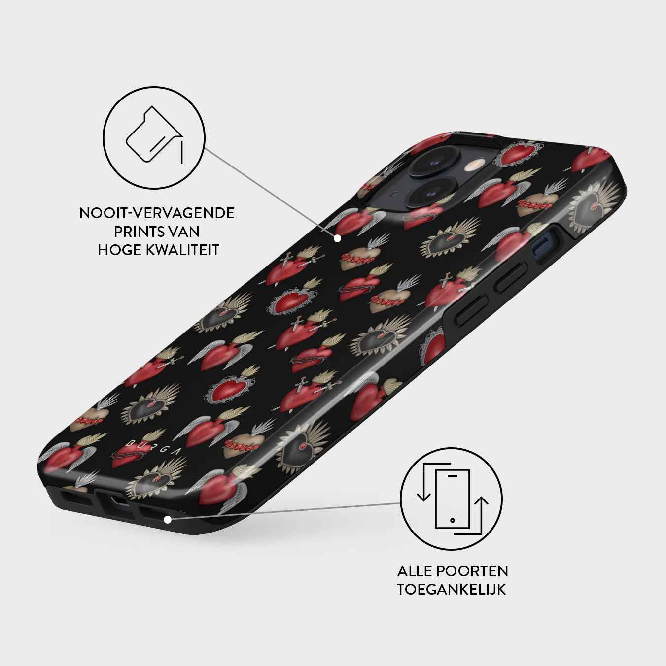 - Verhoogde randen rond de camera voor extra bescherming.