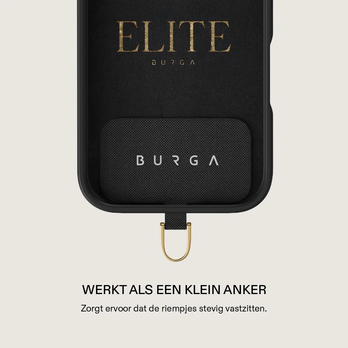 De vervangende haakkaart is het kleine inzetstukje dat handsfree gebruik mogelijk maakt. Het schuift in je telefoonhoesje, blijft plat liggen en vormt een stabiel metalen bevestigingspunt voor elke BURGA-riem of -lanyards.