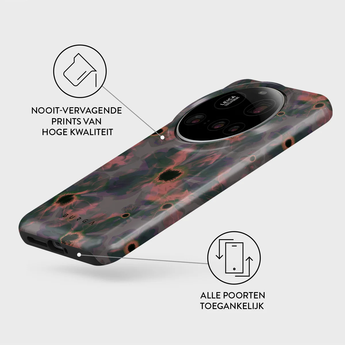 - Verhoogde randen rond de camera voor extra bescherming.